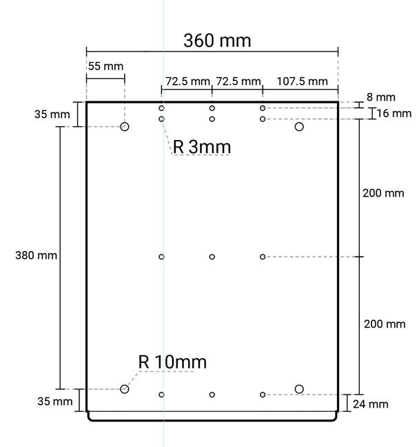 - Háčky lze použít pro vedení kabelů nebo je lze odstranit, pokud nejsou potřeba.