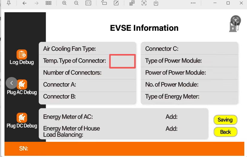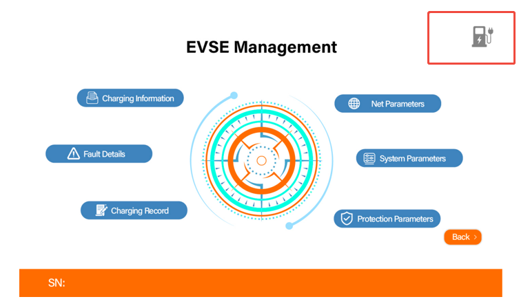 To change the sensor type: First, double-tap the top-left corner of the charging pile screen. When the admin menu appears, tap the top-right corner 3–5 times to enter the settings interface.